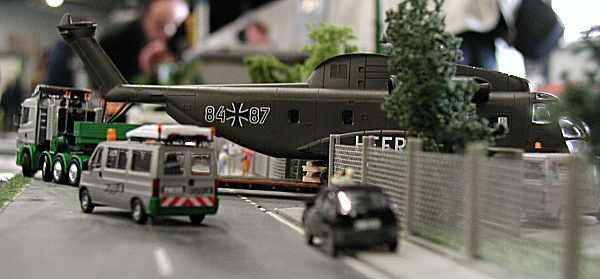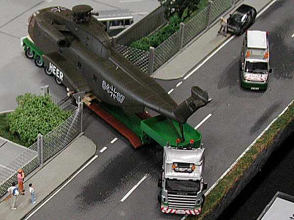 engen Tor geboten, das Fahrwerk der Hubschraubers ist in seitlich vorstehenden Gondeln untergebracht!