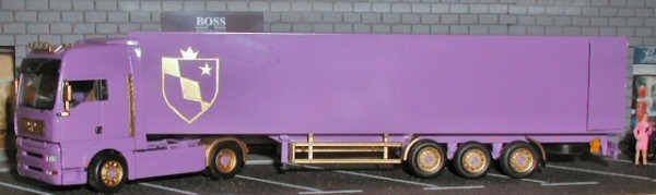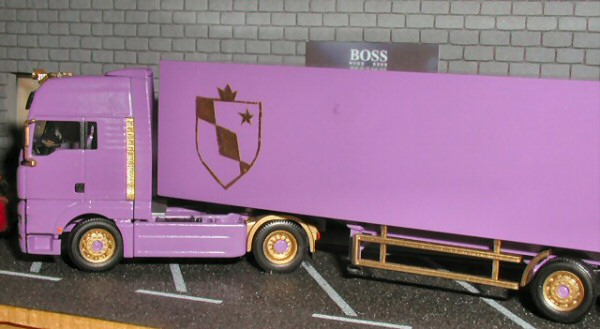 Familienwappen auf dem Auflieger. Die offenen Türen sind Plastikprofile, wobei