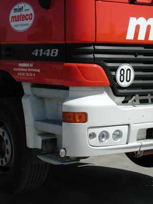 Actros) ist im Dachbereich eingeschnitten, um Durchfahrtshöhen von unter 4 Metern zu