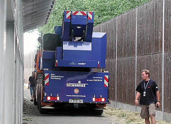 Unter anderem rangierte plötzlich dieser große Brocken hinter den Tribünen zu