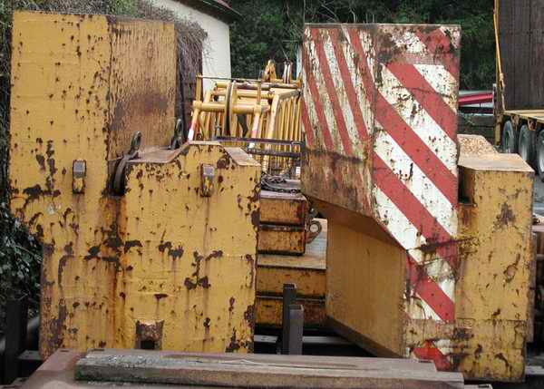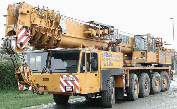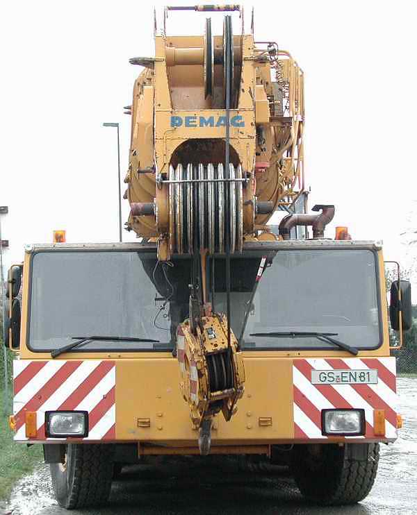Das ist das Objekt der Begierde. Besonders auffallend war in dem Moment der ersten Begegnung das offensichtlich defekte hintere Blinklicht, mein Vordermann war dem doch recht langsam fahrenden Kran beinahe ins massige Heck geknallt! |