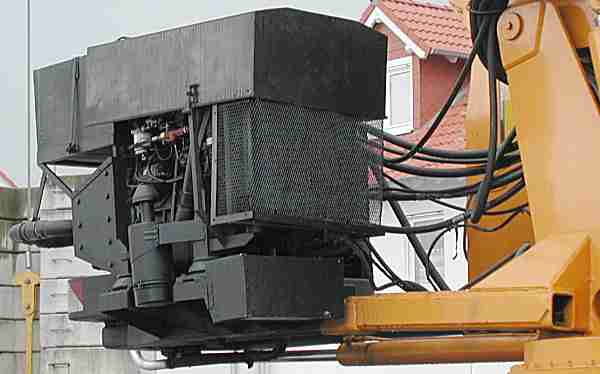 Ebenso beachtenswert: Der offen ohne Schallschutz angebaute Oberwagenmotor, der zu allem