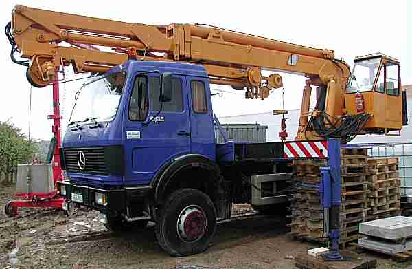 in Mainz Drais dieser Aufbaukran Marke Effer auf einem ebenso alten 3achsigen