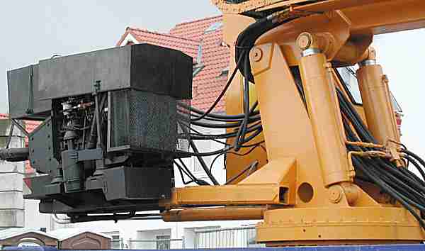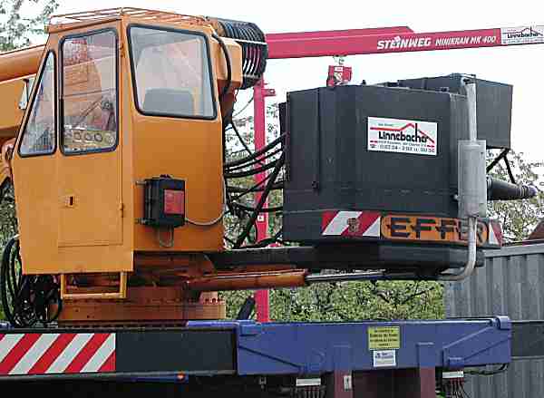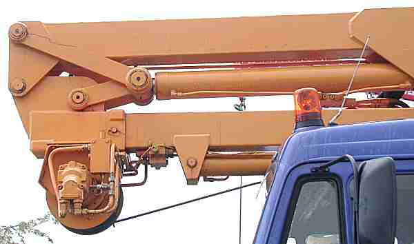 ist, daßdie Seilwinde nicht am Oberwagen sondern am Zusatzgelenk des Auslegers montiert
